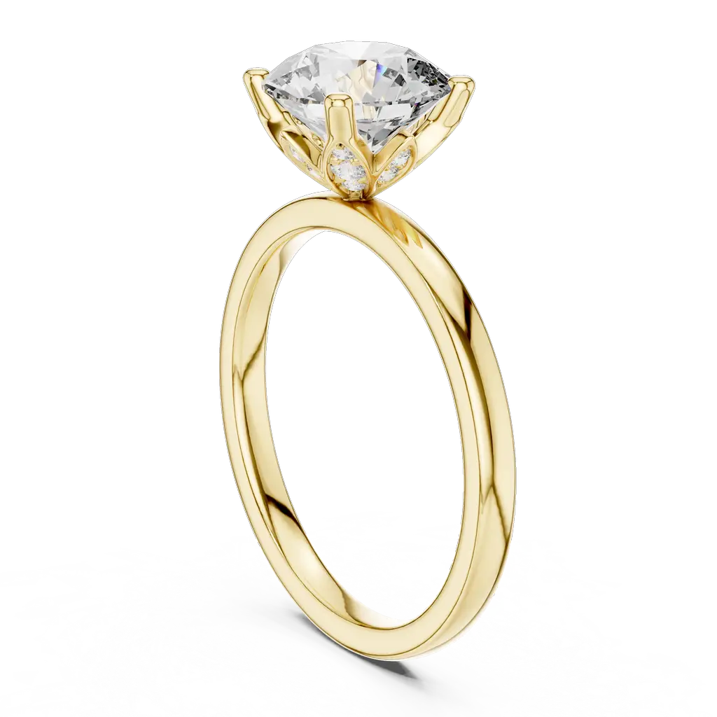A timeless solitaire ring featuring an 8.00 mm round diamond at its center, beautifully set in a secure collet setting. Accented with additional small round diamonds in pave settings on each side, adding a touch of brilliance and detail. Perfect for daily elegance or a special moment. Available in three finishes—Gold, Silver, and Rose Gold—to match your unique style.