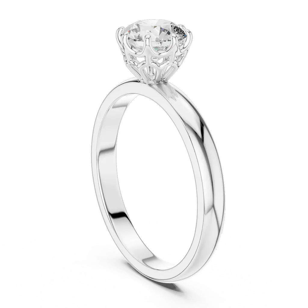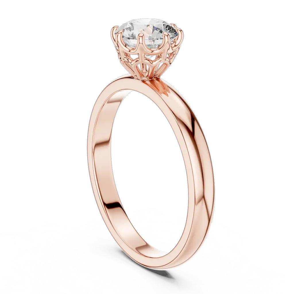 Minimal solitaire ring with a round diamond centerpiece in prong setting. Available in Gold, Silver, and Rose Gold. Elegant and timeless.
