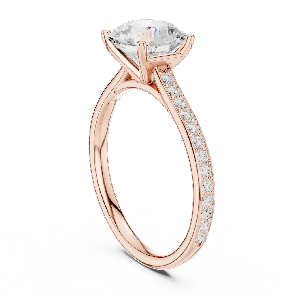 Solitaire diamond ring with pavé-set band, combining timeless elegance and modern sparkle. Available in Gold, Silver, and Rose Gold for versatile everyday wear.