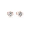 Elegant 18K rose gold diamond stud earrings featuring a timeless cushion-cut design. Perfect for weddings, anniversaries, and everyday luxury. Shop now for a sophisticated sparkle.