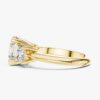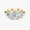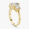 This exquisite three-stone diamond ring features a brilliant round-cut center stone flanked by two dazzling side diamonds, symbolizing your past, present, and future together. Set in polished 18K gold, its classic design radiates warmth, beauty, and lasting commitment — perfect for engagements, anniversaries, or unforgettable moments.