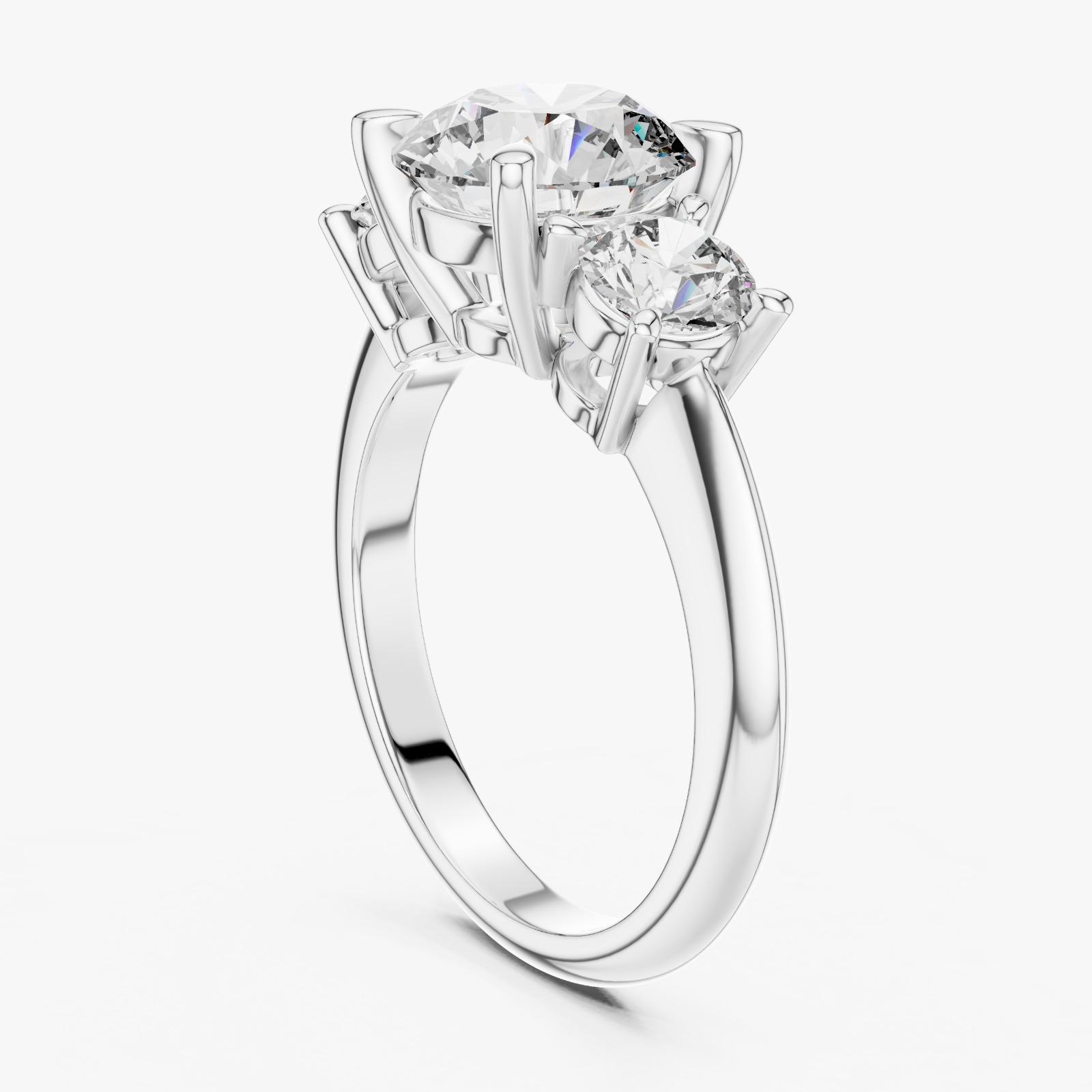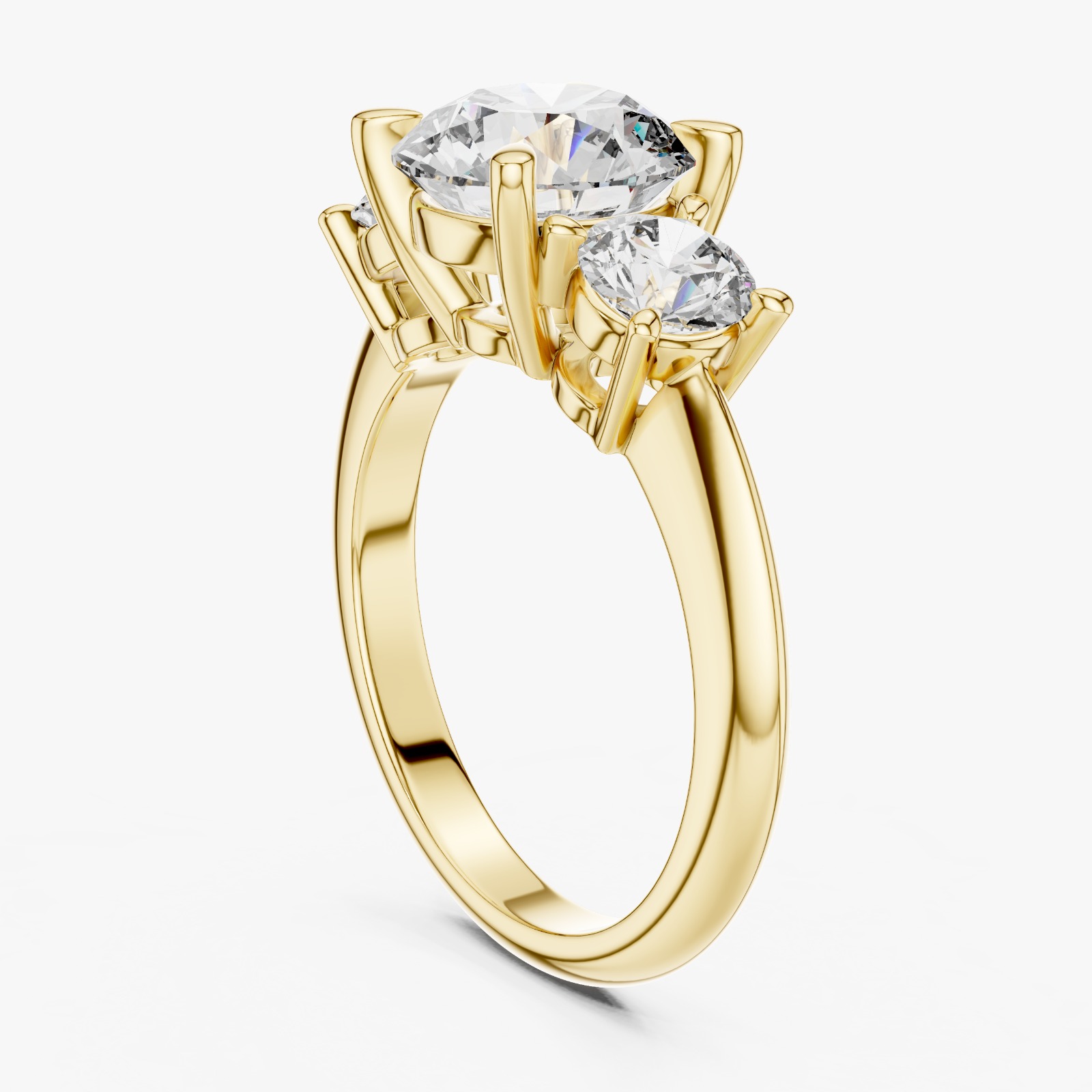 Three Stone Round Cut Diamond Engagement Ring in 18K Gold