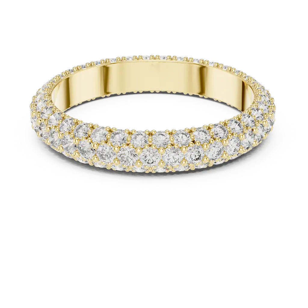 Layered eternity ring with 108 round diamonds in prong settings. Available in Gold, Silver, and Rose Gold for timeless shine and everyday elegance.