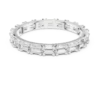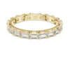 Stylish baguette diamond ring in Gold, Silver, or Rose Gold. A modern classic with 20 sparkling stones in a sleek collet setting.
