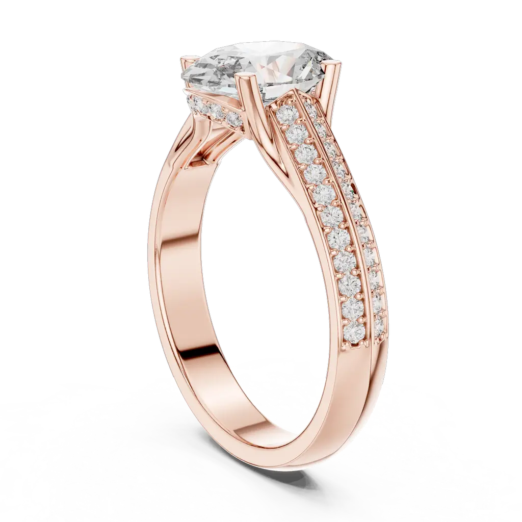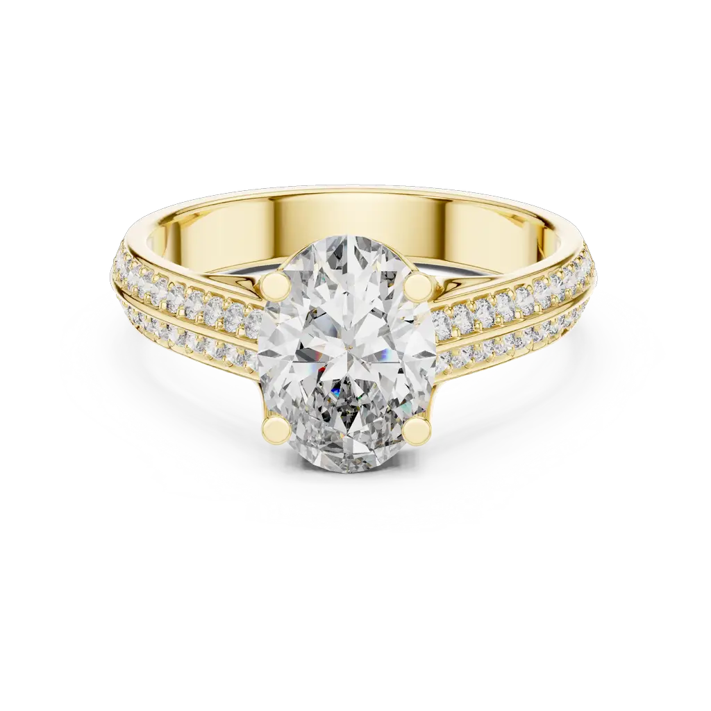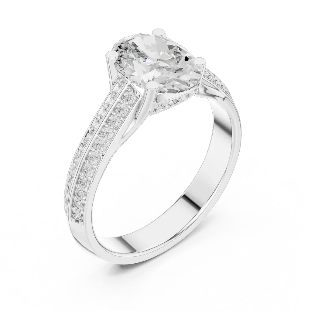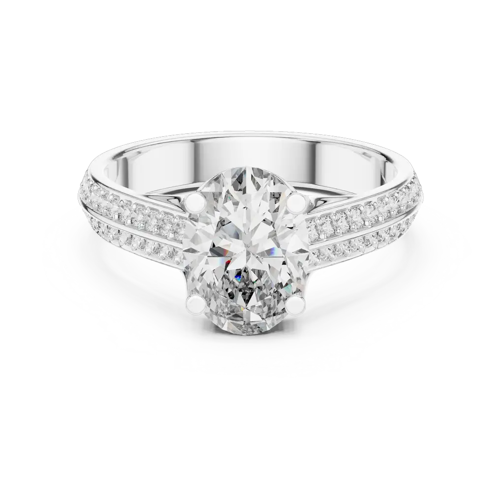 LEDIS ring with oval and round diamonds in pave and collet settings. Available in Gold, Silver, and Rose Gold. Elegant and timeless design.