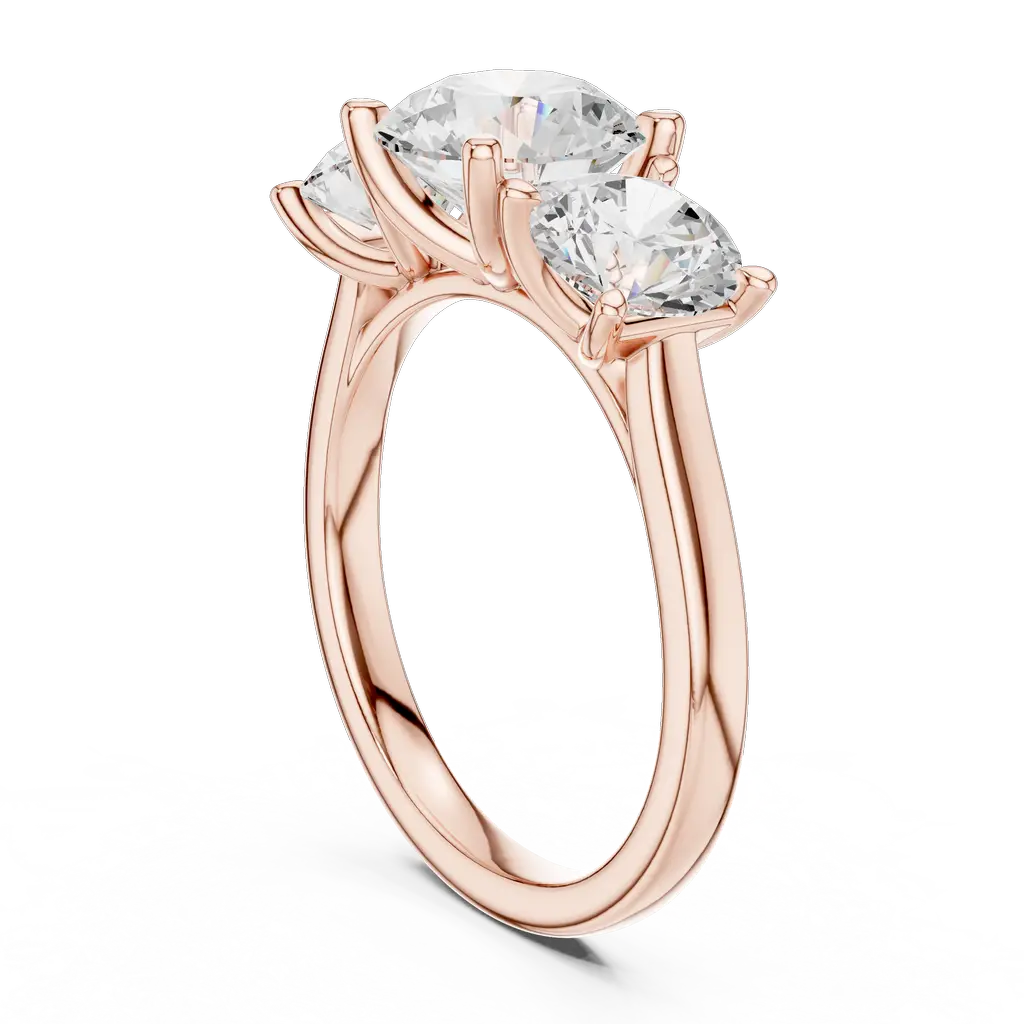 A timeless blend of elegance and charm, this ladies ring features a trio of round diamonds, including a striking 8.00 mm centerpiece and two accent stones. The detailed CAD design ensures precision and finesse. Set with expert collet and cut settings, the ring is available in Gold, Silver, and Rose Gold options. Ideal for those who appreciate refined beauty with a modern twist, this ring brings sophistication to everyday wear.
