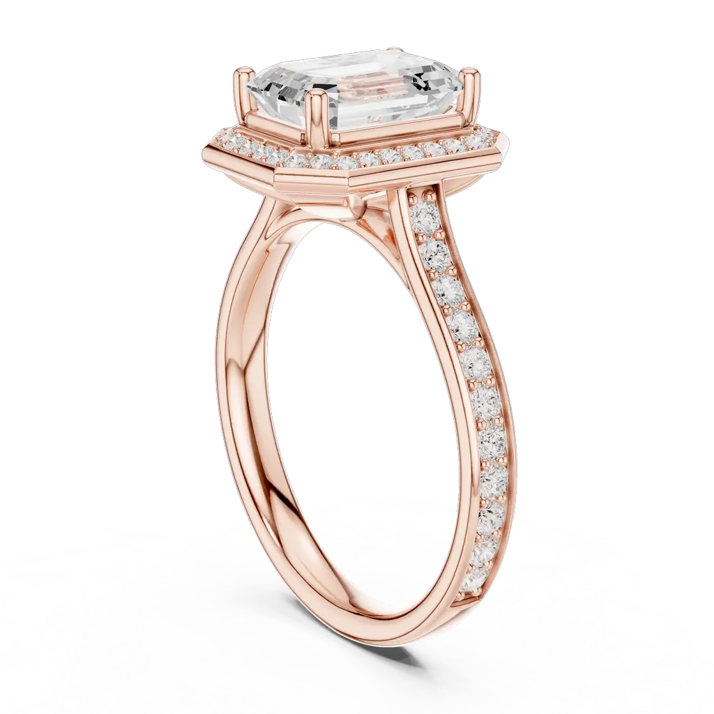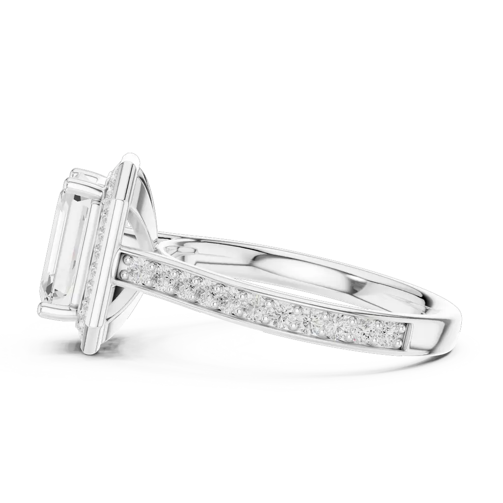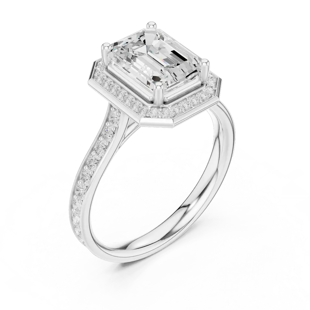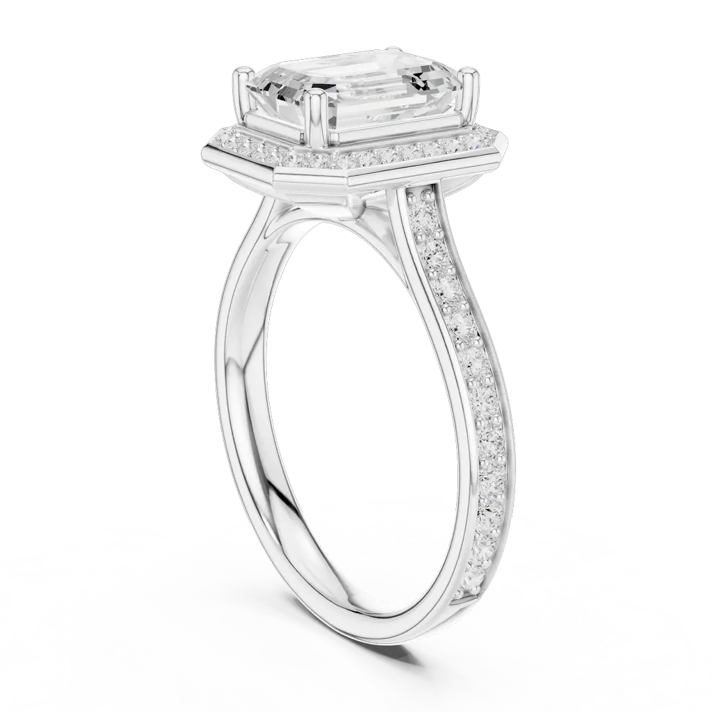 Emerald-Cut Center Diamond Ring with Pave-Set