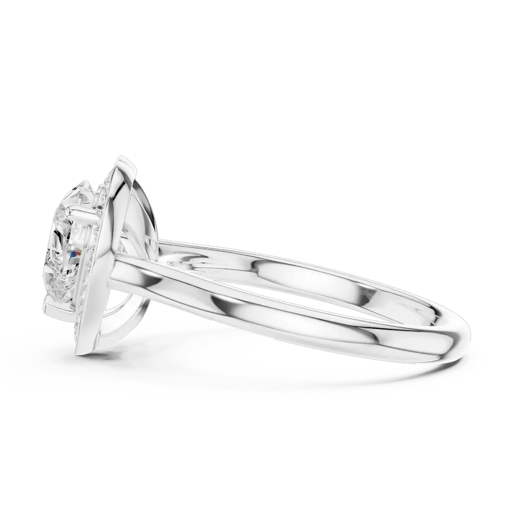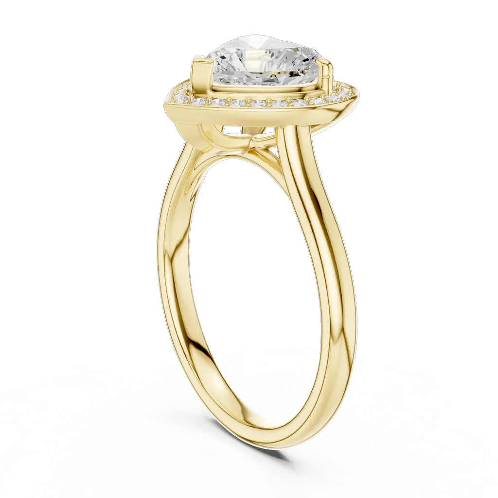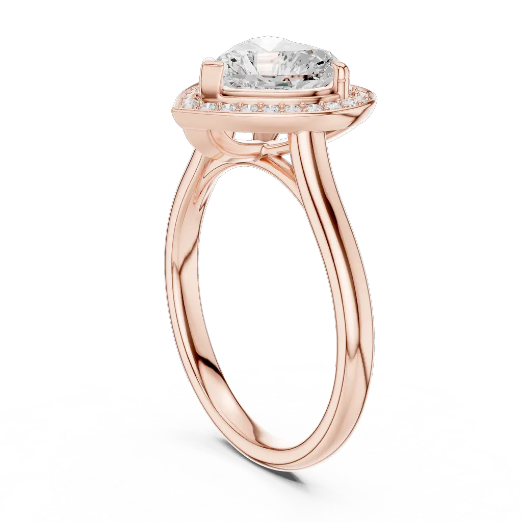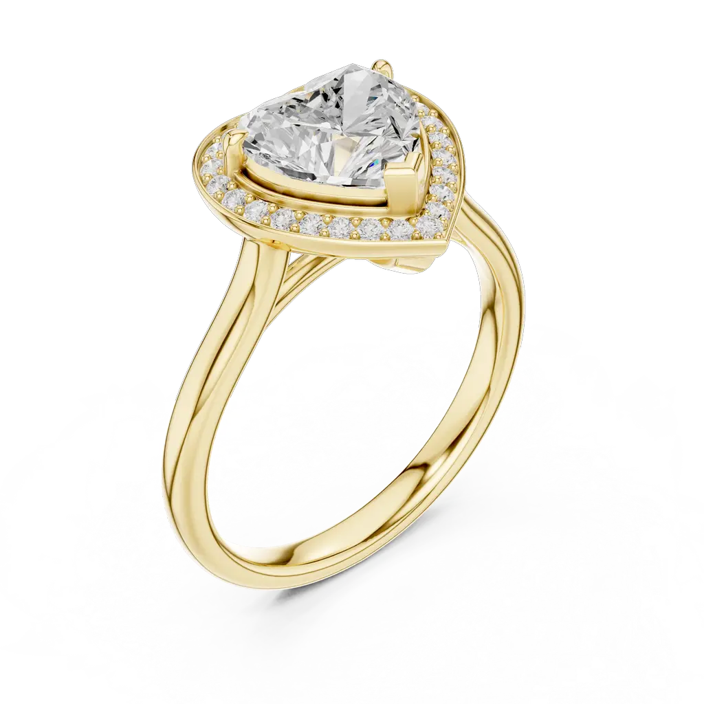 Heart-shaped diamond ring with surrounding round diamonds. Beautifully designed for elegance and love. Available in Gold, Silver, and Rose Gold finishes.