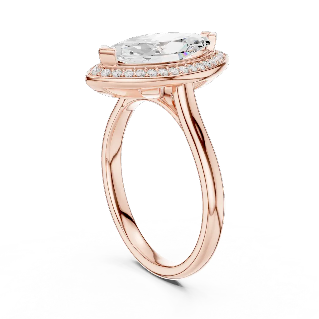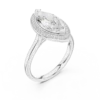 Elegant marquise diamond ring with pave-set halo, crafted in Gold, Silver, or Rose Gold. A graceful piece for special occasions or daily elegance.