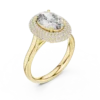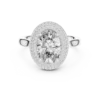 Oval center stone ring with a diamond halo and sparkling pave band. Available in Gold, Silver, and Rose Gold to suit every occasion.