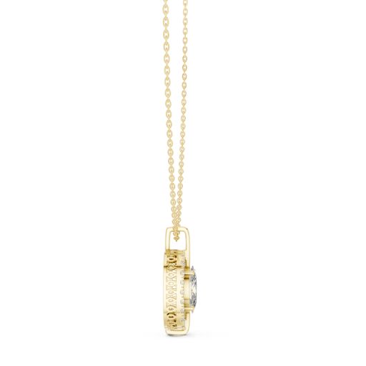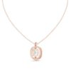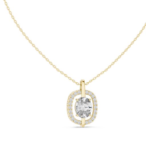 Crafted in sterling silver, this pendant features a striking 10.88×8.82 mm oval diamond at its center, set in a secure collet setting. Surrounding the main stone are 22 round diamonds in a neat halo design, totaling 2.54 carats. The combination of shapes and brilliance creates a timeless piece perfect for formal occasions or as an elegant gift. Refined craftsmanship and balance make this pendant a standout.