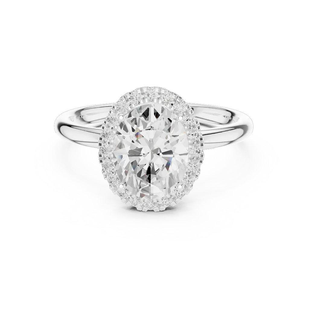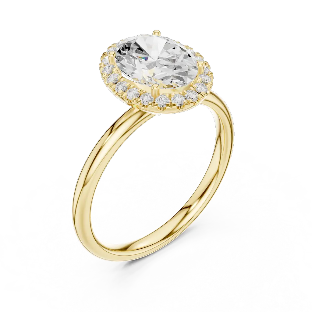 Classic oval halo ladies ring with round diamonds and elegant setting. Available in Gold, Silver, and Rose Gold. A perfect blend of charm and sparkle.