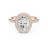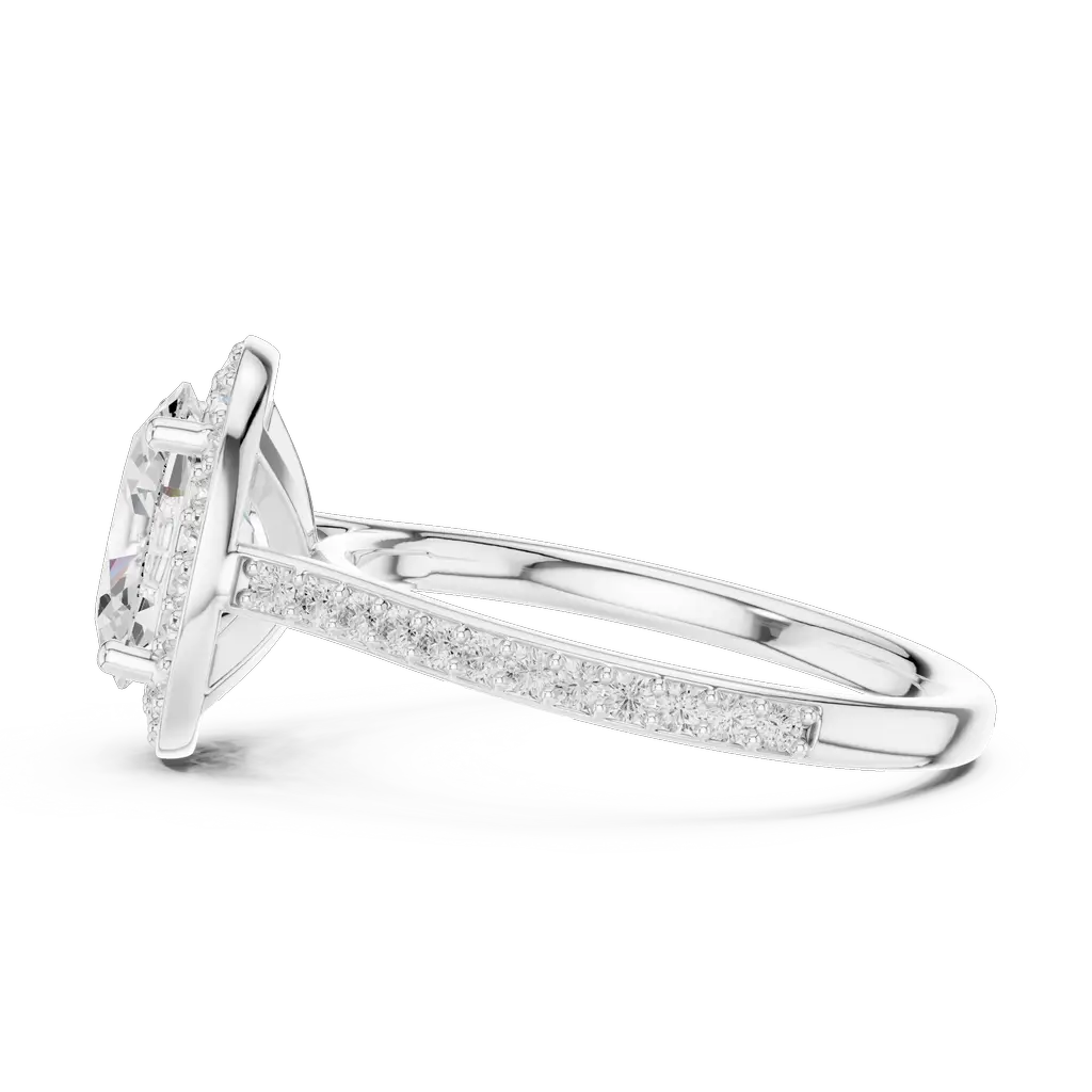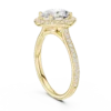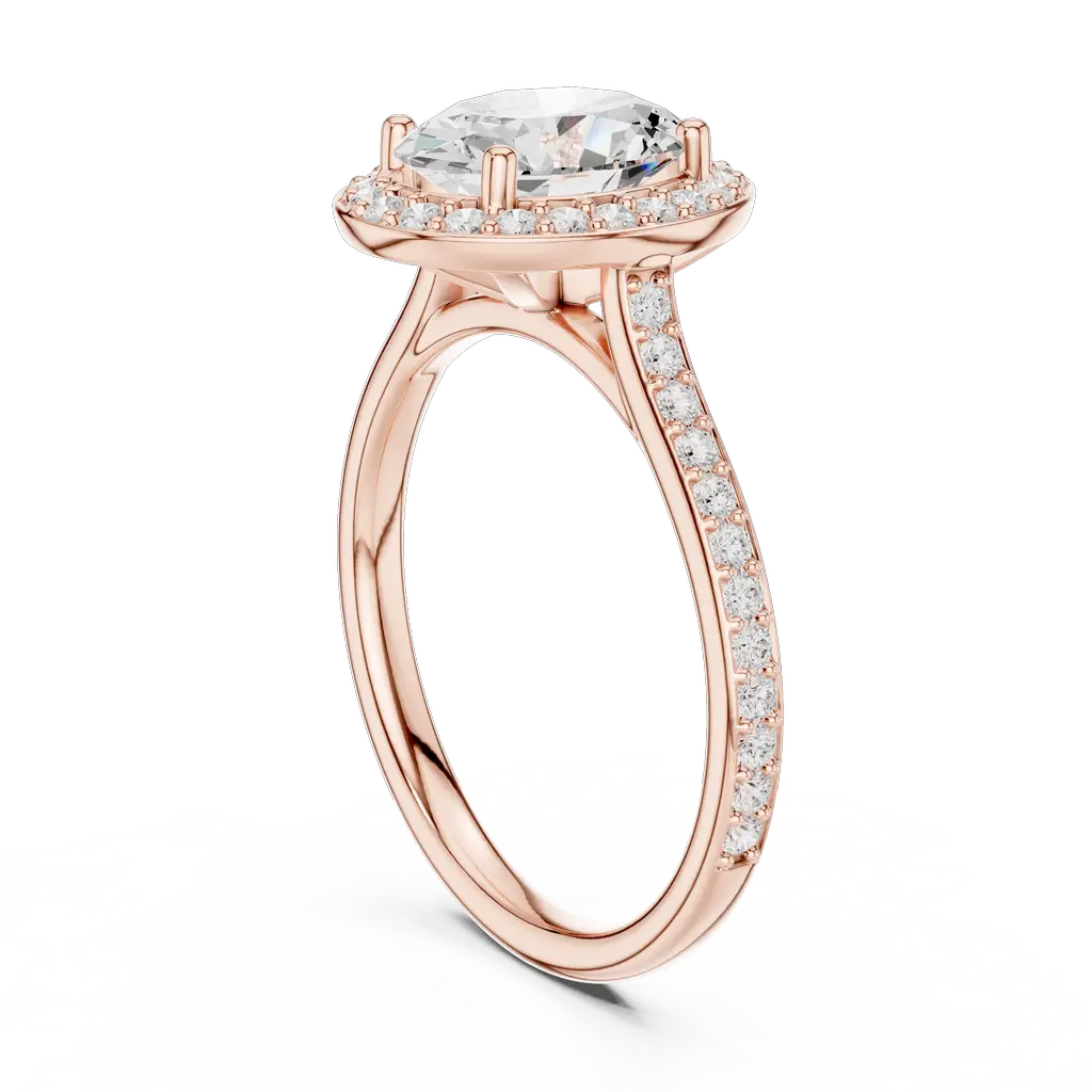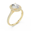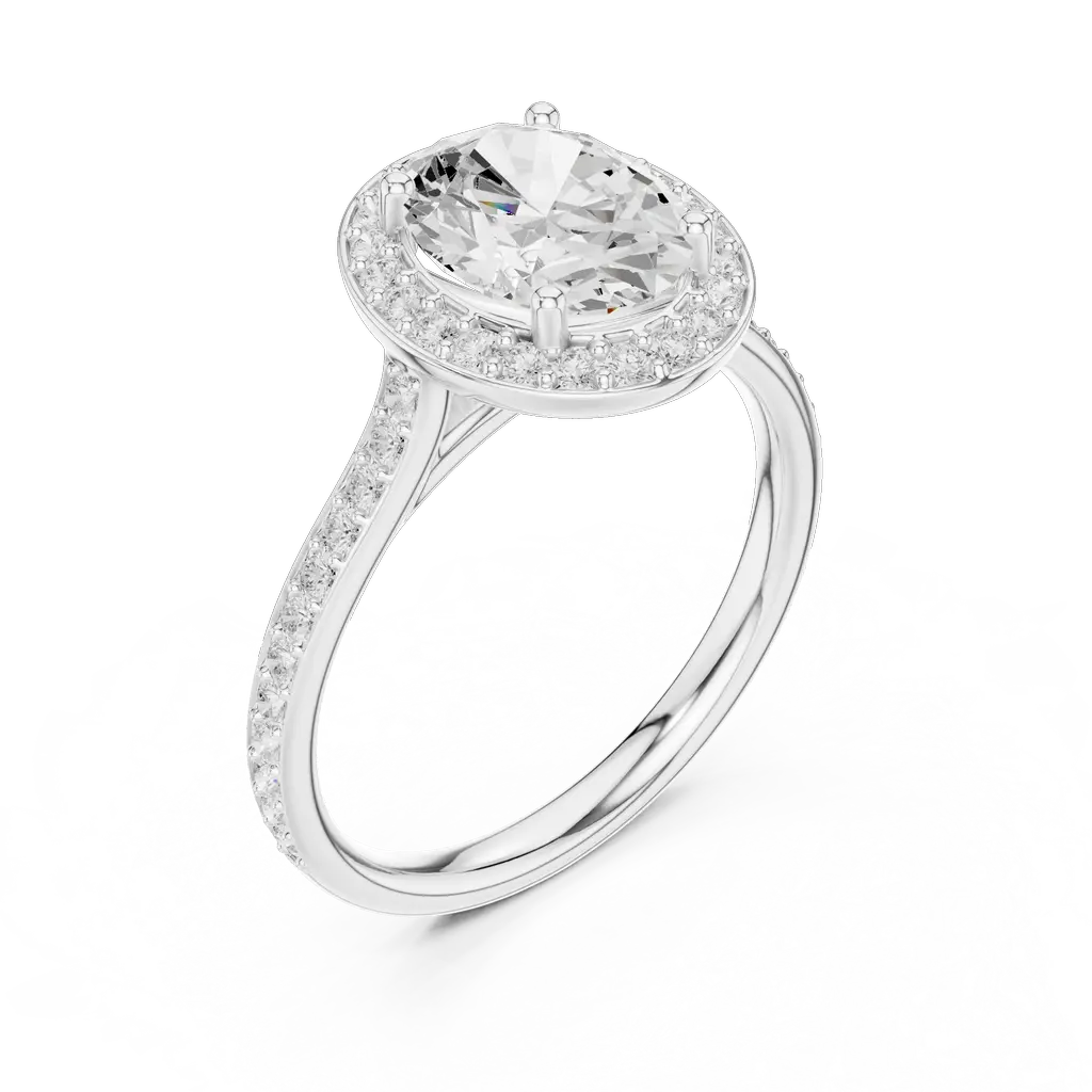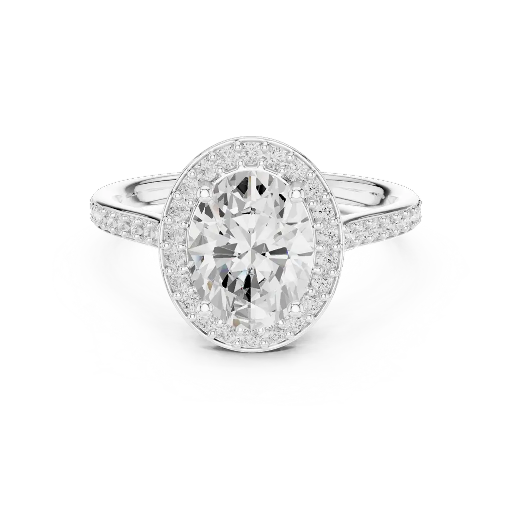 Oval diamond halo ring with a pave band, featuring 47 diamonds. Available in Gold, Silver, and Rose Gold. Elegant, timeless, and stunningly radiant.