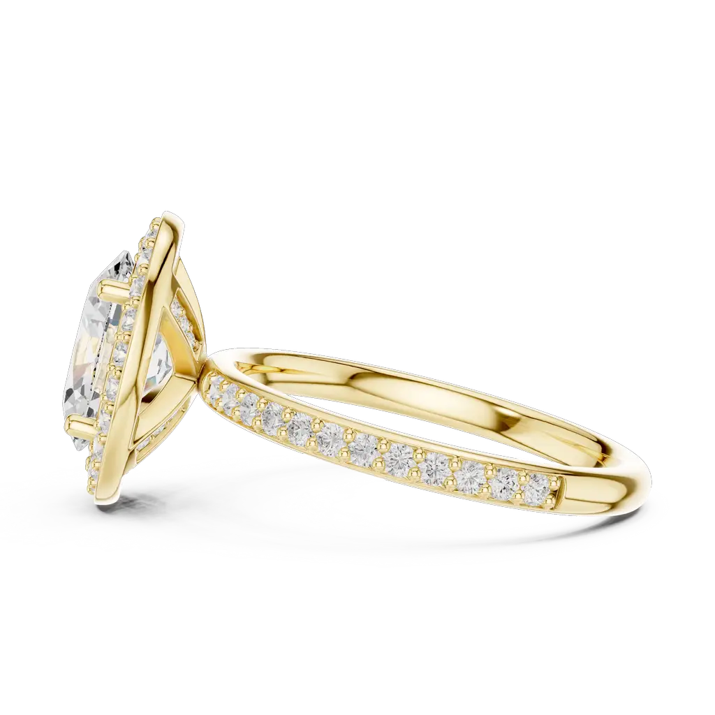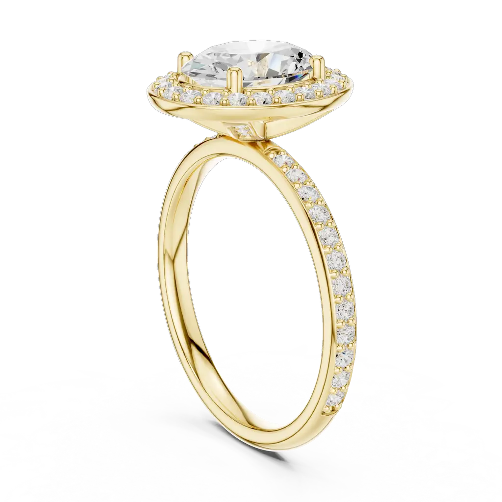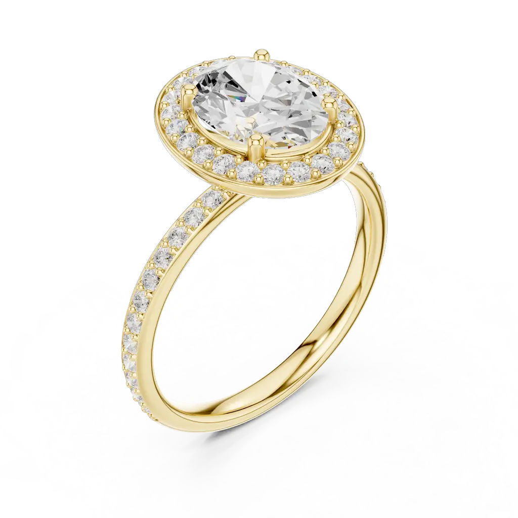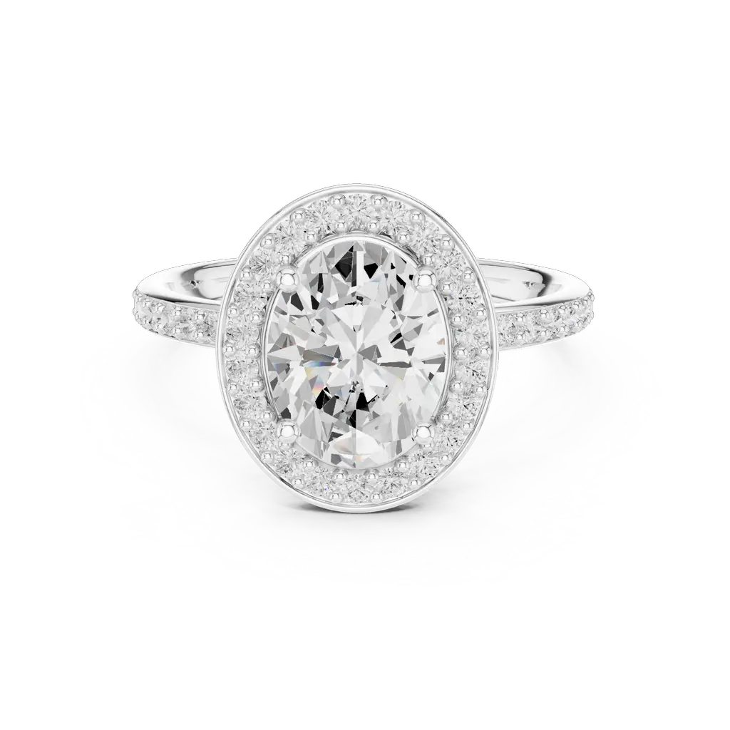 Oval diamond halo ring with triple-row pave detailing, crafted to sparkle from every angle. Available in Gold, Silver, and Rose Gold.