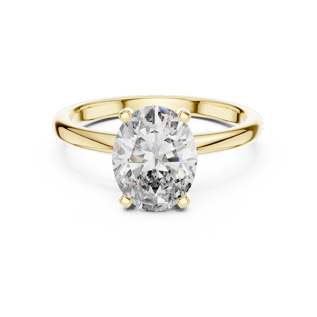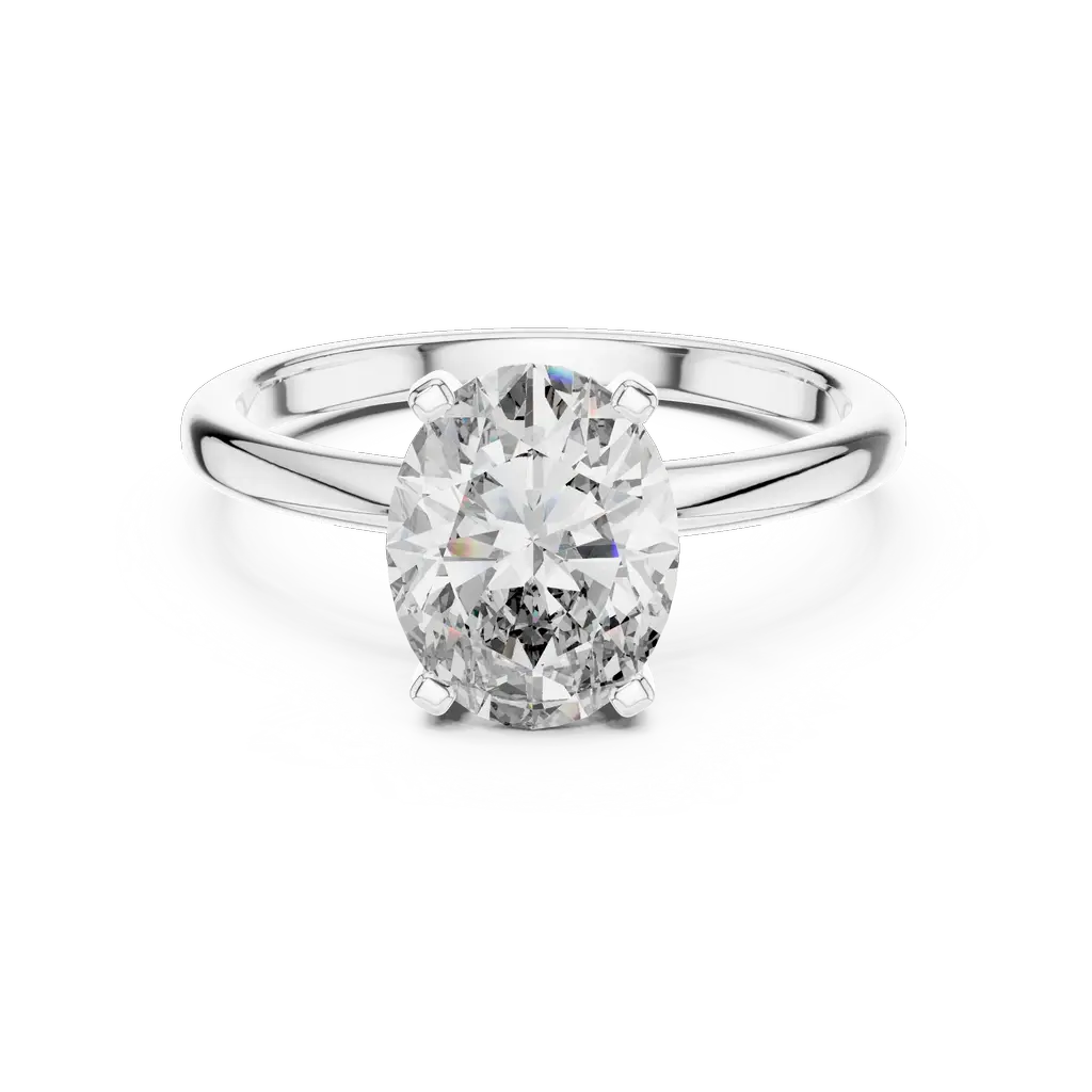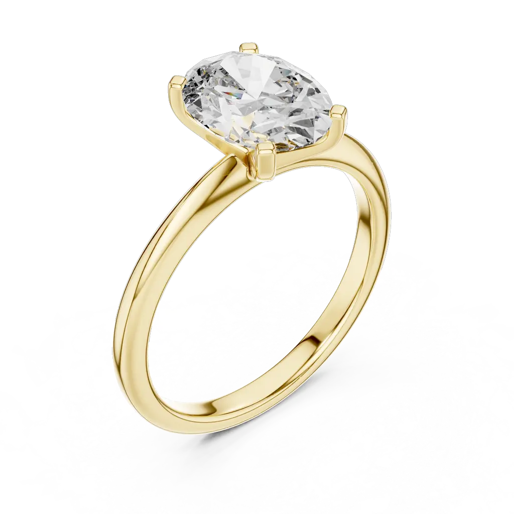 Classic oval solitaire ring with a 2-carat diamond. Elegant, timeless design available in Gold, Silver, and Rose Gold to match your personal style.