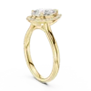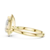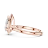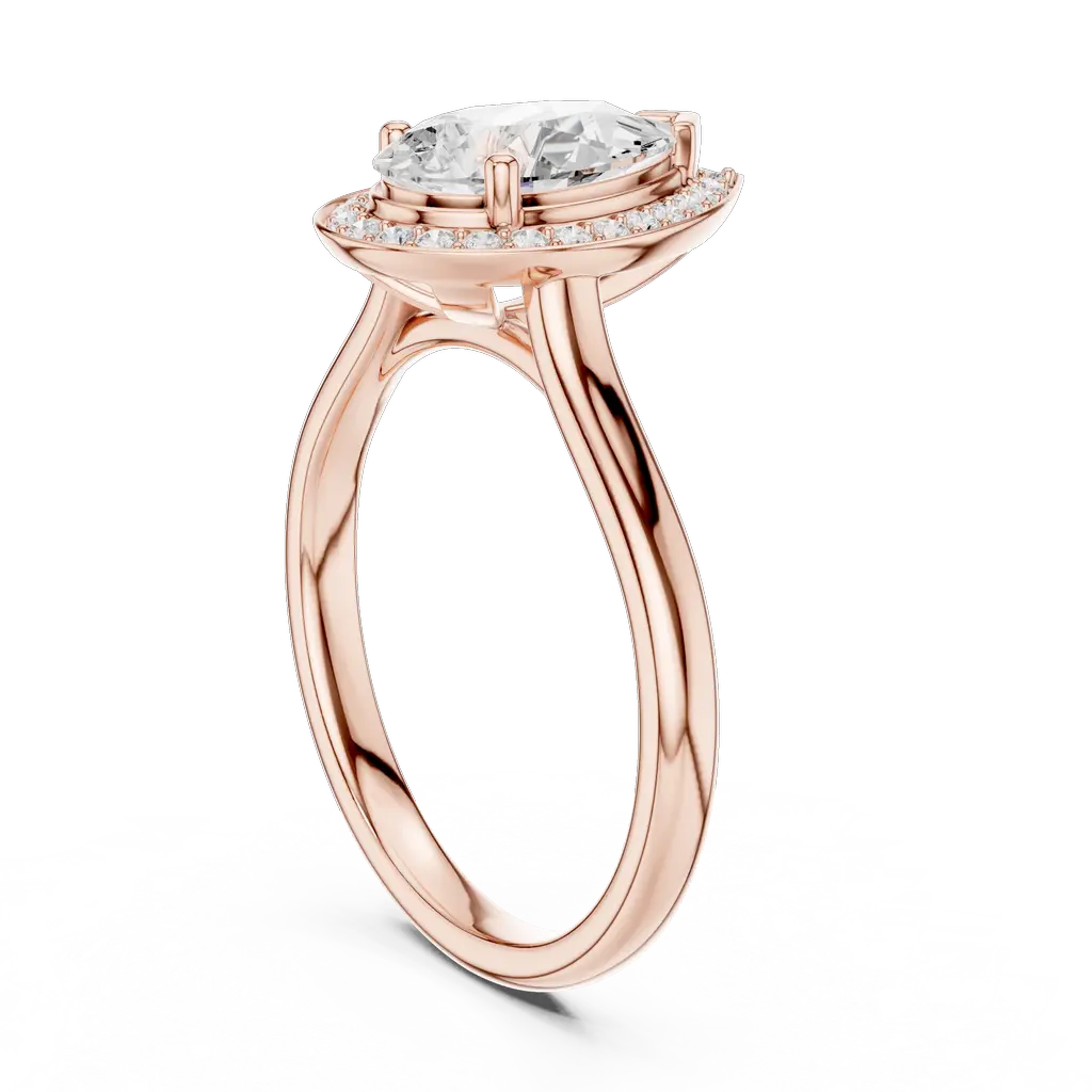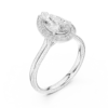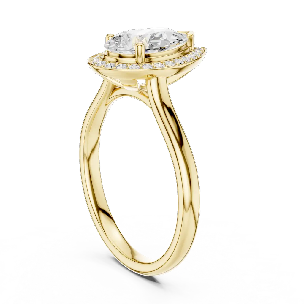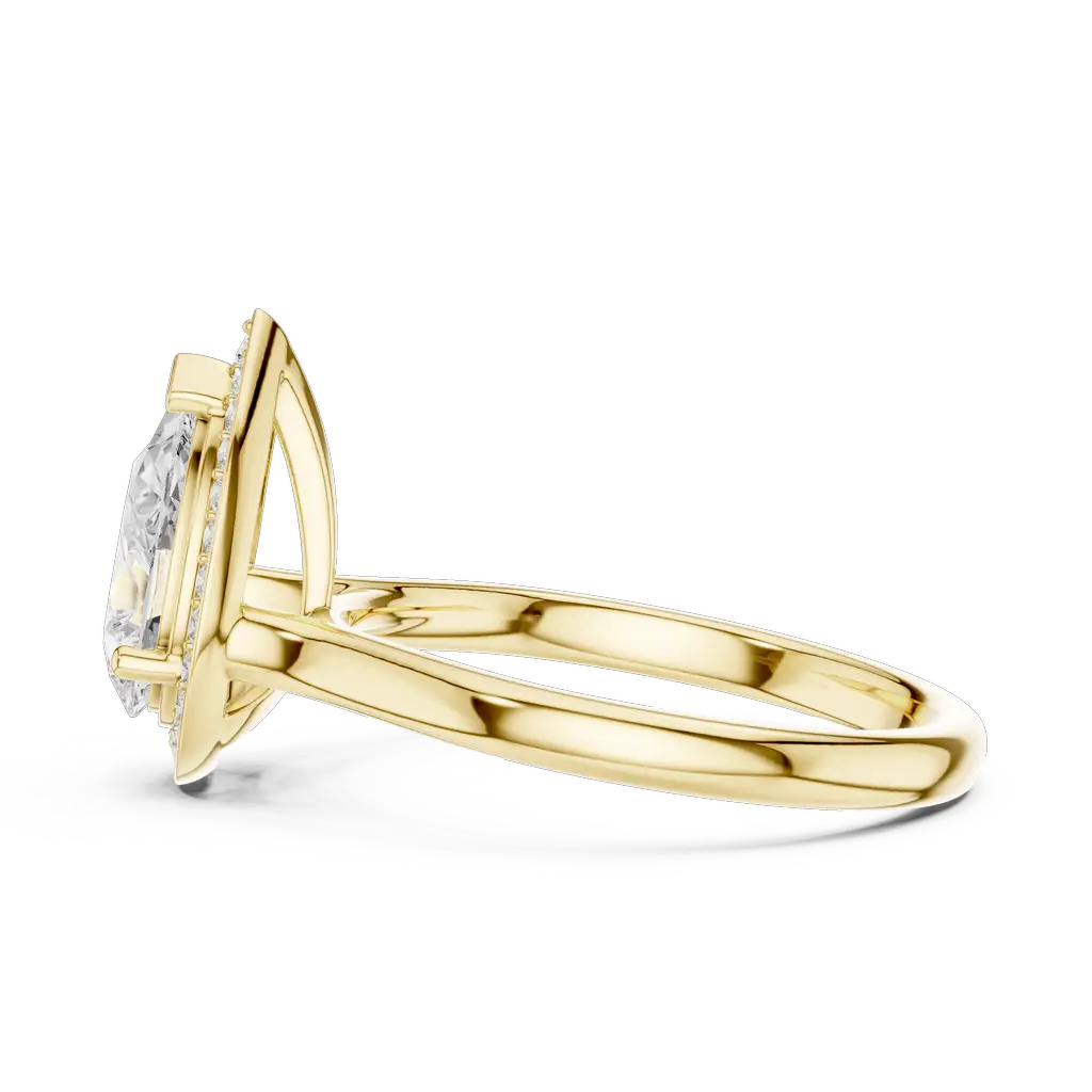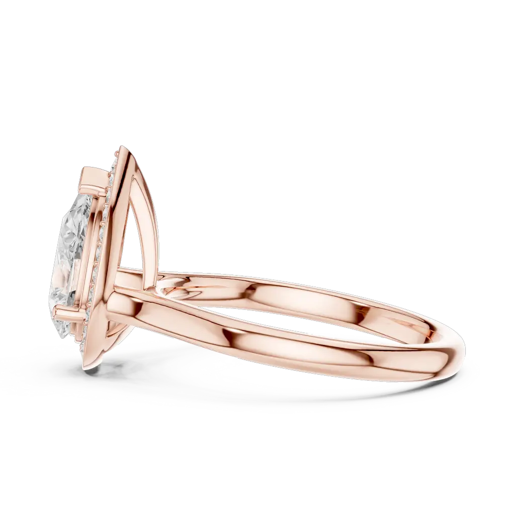 Pear-shaped diamond ring with a round diamond halo. Available in Gold, Silver, and Rose Gold. A graceful design for elegant everyday or special wear.