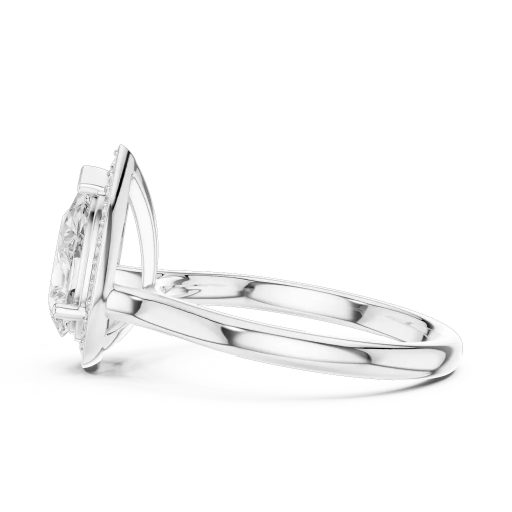Pear-Shaped Center Diamond Ring with Halo Accent