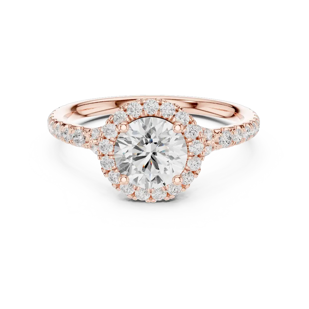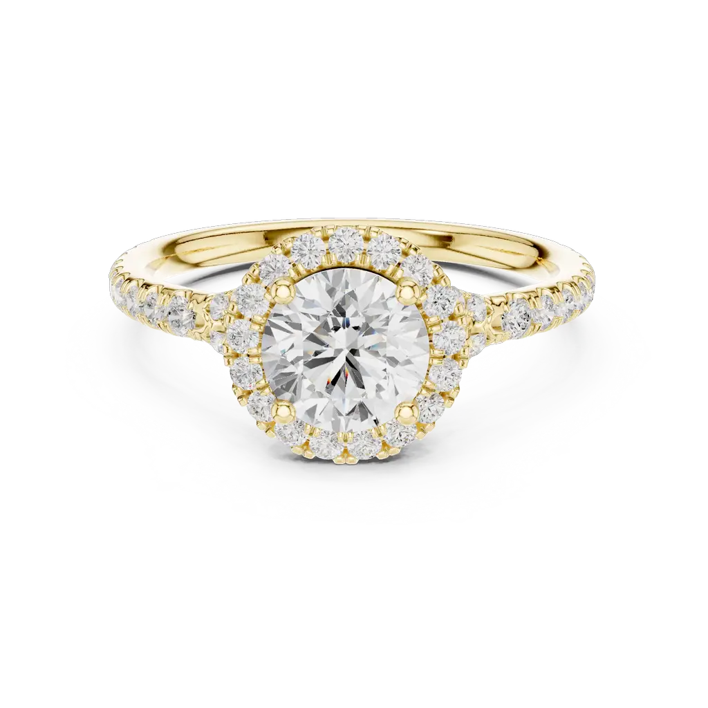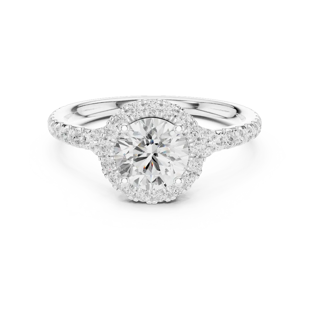 A timeless round-cut diamond ring with 48 brilliant stones that wrap elegantly around the band. The center stone, set in a secure collet, shines boldly, while the accent diamonds are neatly placed using U-cut settings for extra brilliance. Perfect for engagements or special occasions. Available in Gold, Silver, and Rose Gold finishes, this ring blends classic charm with refined detail to elevate any jewelry collection.
